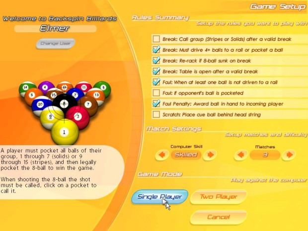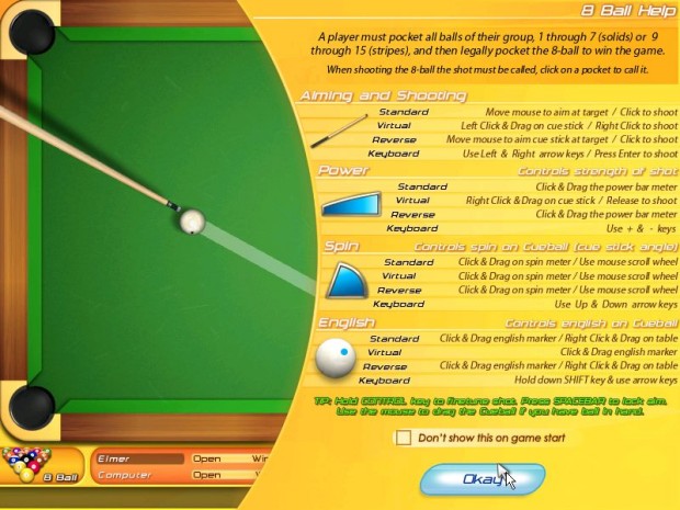in 8-Ball, 9-Ball, Cutthroat and other great games. Or, for a real