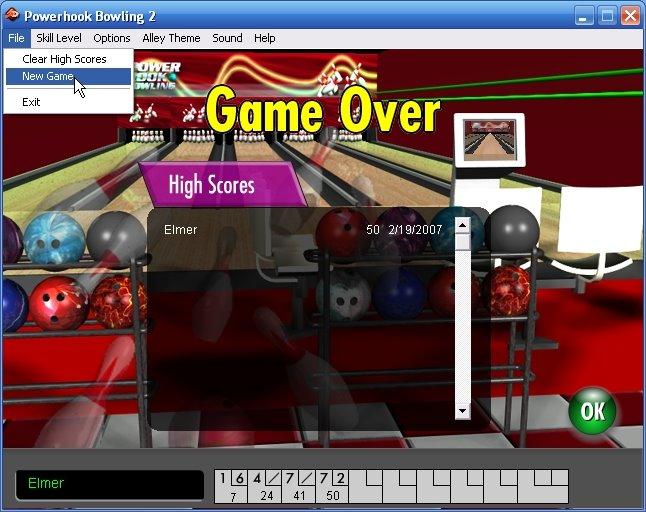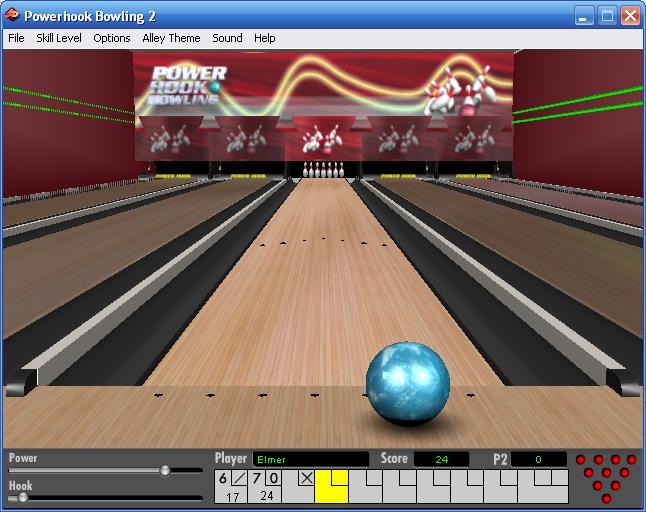 Now you can bowl and hook the ball into the pins like the pros do. Practice your bowling skills and experience realistic pin action powered by a physics engine. Eight different balls and five lanes to choose from. Until you master the hook you can put the bumpers up. Games are limited to four frames until Powerhook Bowling is registered.