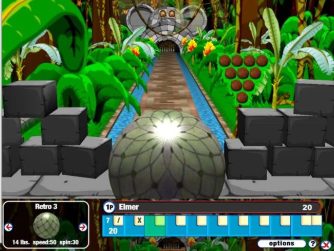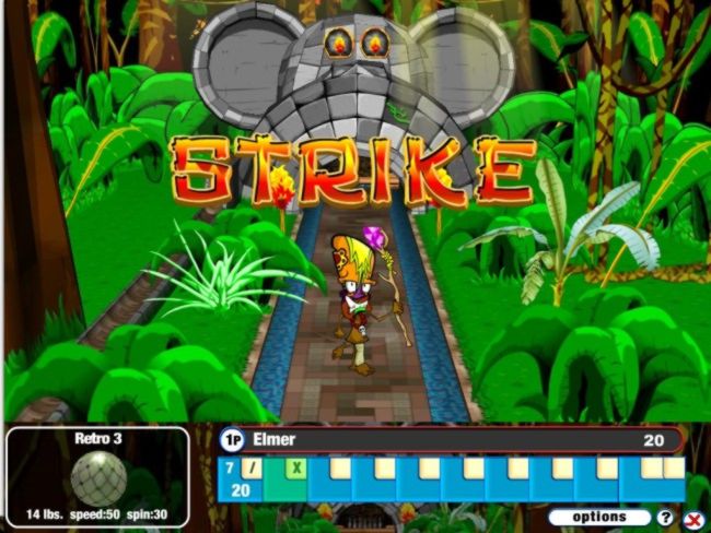 Get strikes! Use the mouse to position your bowler, hold your mouse button down and drag downward to start your throw, then drag up and release the button to throw the bowling ball. How far and fast you drag up determines the speed of the ball. Try different bowling balls and see which one works best for you and the lane (it changes daily) you are playing.