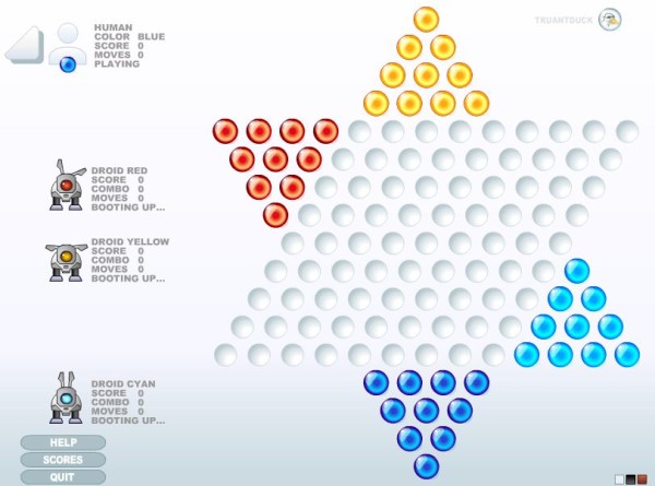 MOVE AND JUMP YOUR STONES ACROSS THE BOARD TO WIN IN THIS GAME OF STRATEGY. CHALLENGE UP TO 6 TRUANTDUCK DROIDS, AND SCORE A WIN FOR HUMANITY.