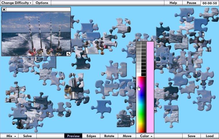 The menu at the bottom allows you to see a preview of the completed picture, select only the edge pieces, change the background, even solve and restart the puzzle. Select the "Help" menu for more.