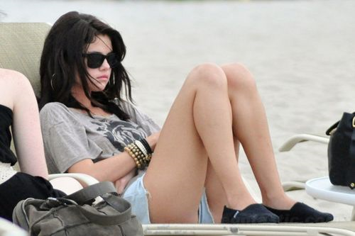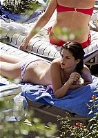 Well, I would like to formally apologize, ’cause as these new pics show, we really did need new some new Selena bikini pics! The purple bikini was great, but she really has developed since then.