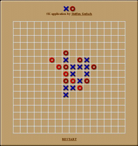 Not easy to win, this is a game which will challenge you right to the end. You can start anywhere you like on the 16x16 grid and the computer will follow your Xs with Os of its own.