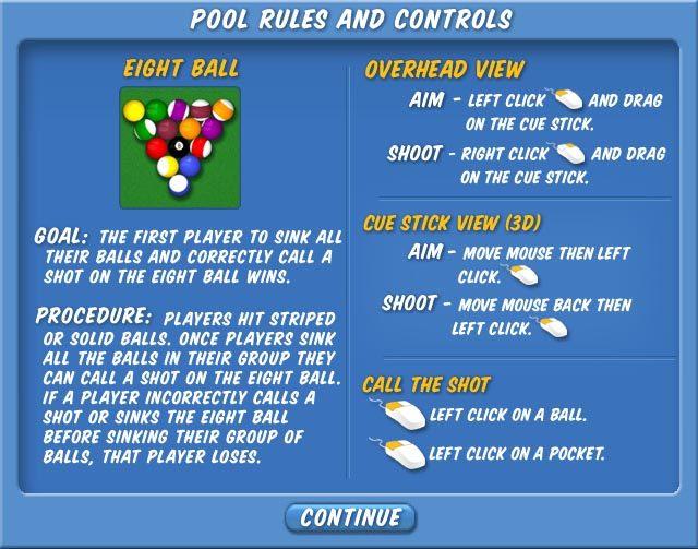 We've included six popular pool games including 8-Ball, 9-Ball, Pyramid